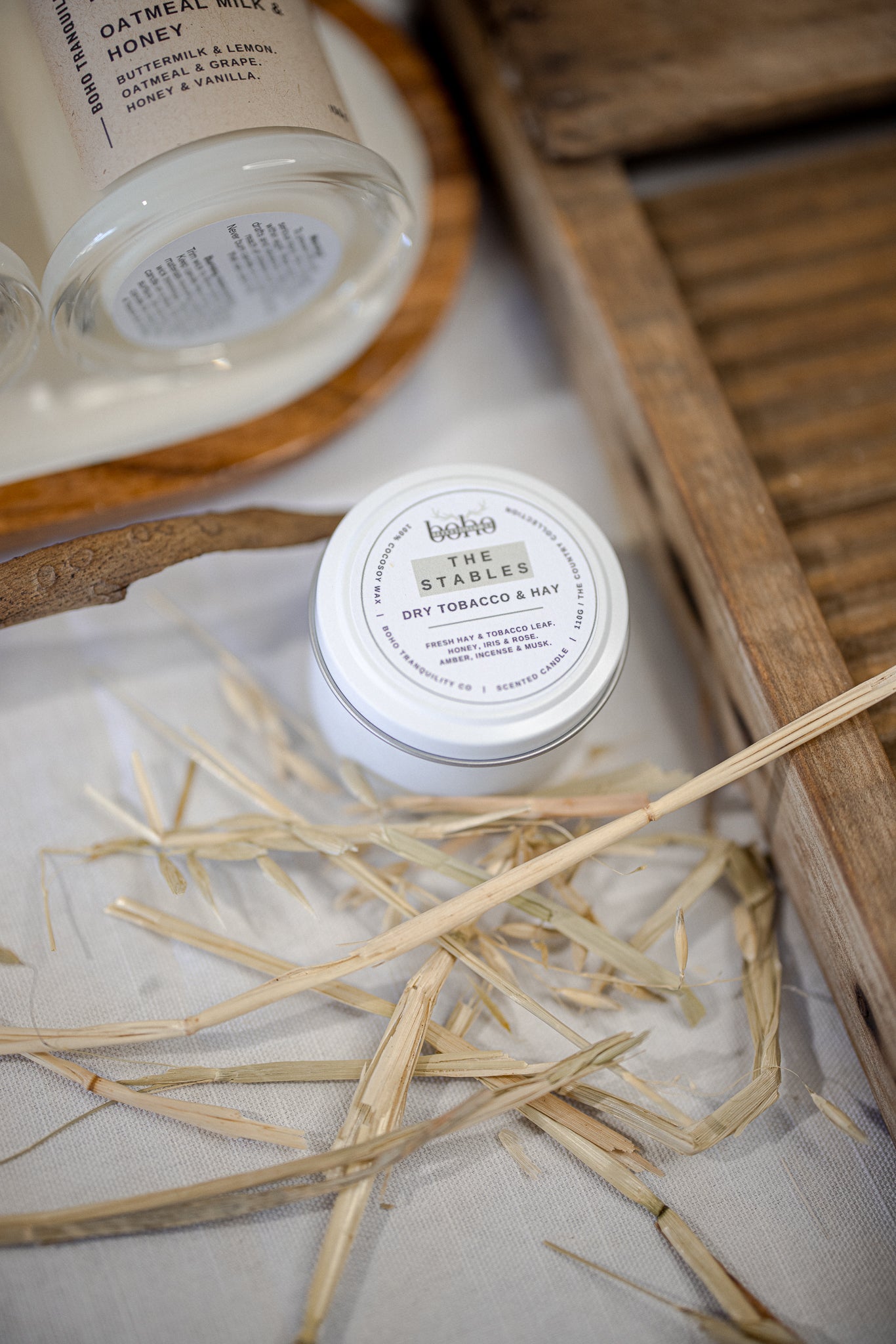 Step inside The Stables, where the scent of fresh hay mingles with aged tobacco and soft golden light spills across worn timber beams. This captivating fragrance embodies the quiet strength and grounded warmth of country living.