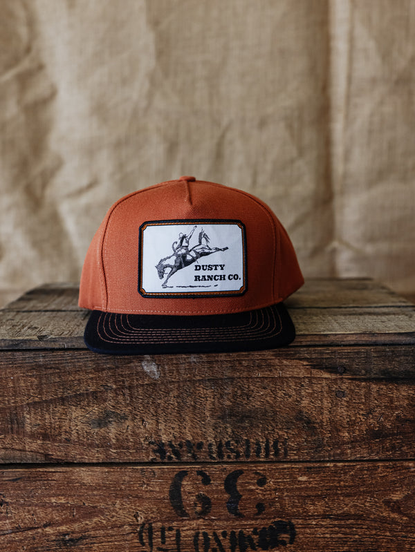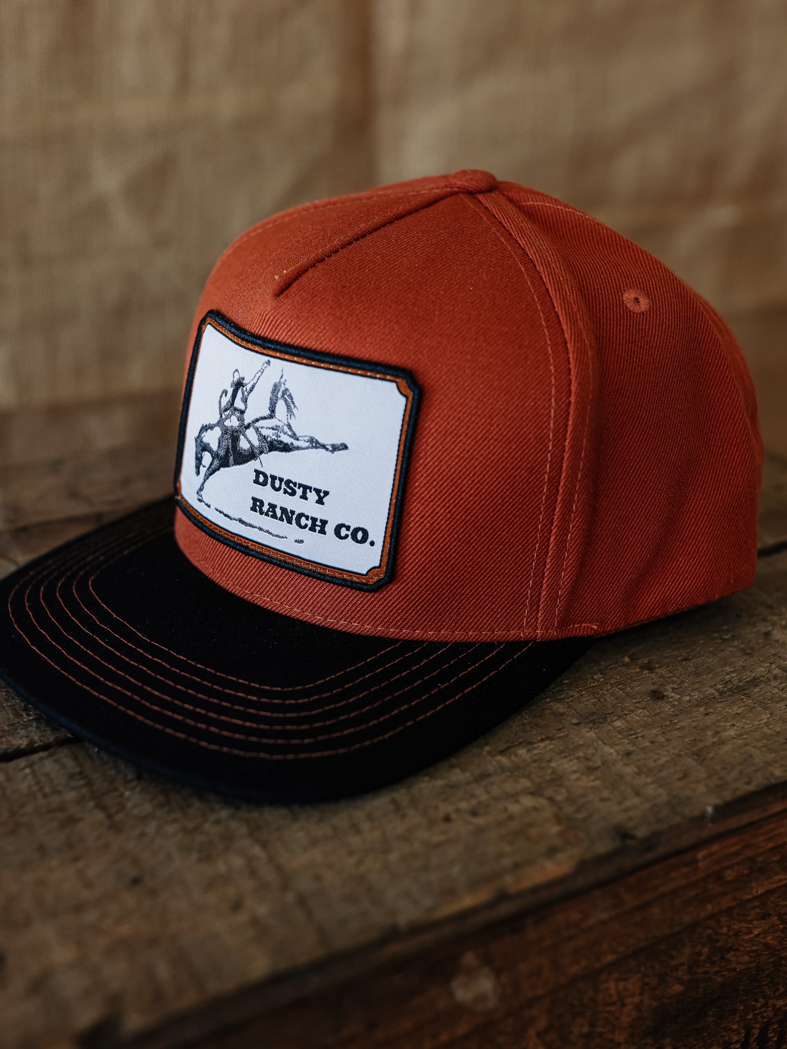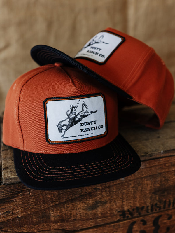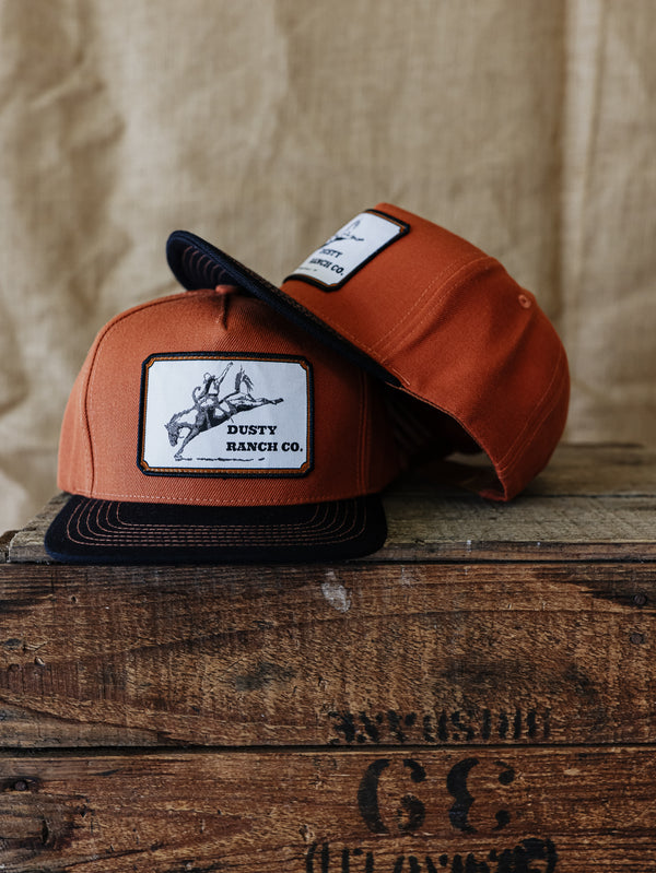 Grit, dust, and the thrill of the ride—Rust Rider is built for those who live for the arena lights and open skies. Designed with a rust-colored acrylic cotton crown and a contrasting black brim, this cap is all about bold western style with a bronc rider patch front and center. The contrast rust stitching adds an edgy touch, making it a go-to for cowboys, cowgirls, and rodeo fans alike.